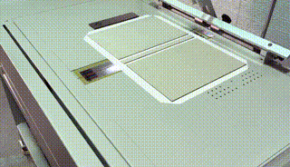 封面吸附定位 負(fù)壓吸附將封殼材料,定位準(zhǔn)確,不移位,避免封面與紙板粘合時(shí)出現(xiàn)氣泡。 內(nèi)置式柔光反射中心定位參考網(wǎng)線可方便觀測到書脊位置。 |